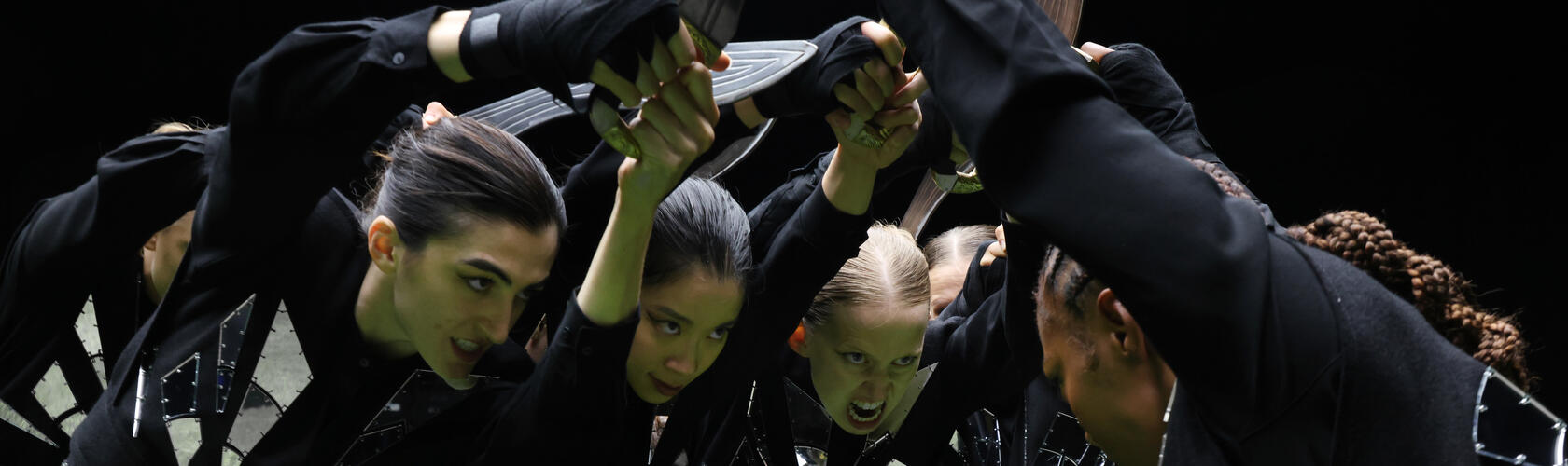 The space is vast, and the scenes are arranged in the dark. On a raised platform in the centre of the space, a group of men and women enact a black wedding, a ritual originating in the Vlach community of eastern Serbia in which a deceased young man is symbolically married to a living young woman. On the rooftop of the kafana, a Balkan-style coffee bar, dancers lock arms in a traditional circle dance, the kolo. At a sprawling cemetery, naked women embrace skeletons of their deceased lovers. Altogether, there are 13 acts, all based on authentic rituals and traditions from the region; viewers are free to roam the space, becoming intimately cocooned in one part of it or taking in several layers at once. Sonically, songs, chants, stories, heavy steps, bodies falling and moans overlap, blending into an orgy of dancing, grieving, screaming, desiring bodies.