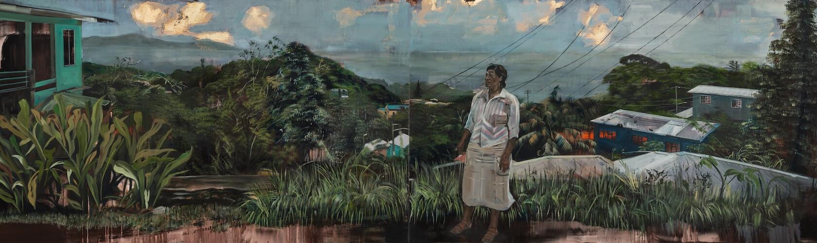 What does home mean if you have spent your life living in the in-between? Second-generation immigrant, diasporic subject and a child of multiple heritages? This is what London-born artist Emma Prempeh negotiates in ‘Belonging In-Between’, an exhibition series that documents her mother’s return to St Vincent after leaving her Caribbean home 40 years earlier – a journey that becomes a proxy for the artist’s own negotiation of distance and belonging. Each canvas transports the viewer to the site of a memory: the impressionistic quality of Prempeh’s paintings and the dense surge of green bushes, palms, grasses and hedges overwhelm the canvas, so that buildings and figures become secondary objects. This excess of foliage, combined with her painterly blur, creates a veil between the viewer and the image, mirroring the distance between the present and the contested space of memory. – Angel Lambo